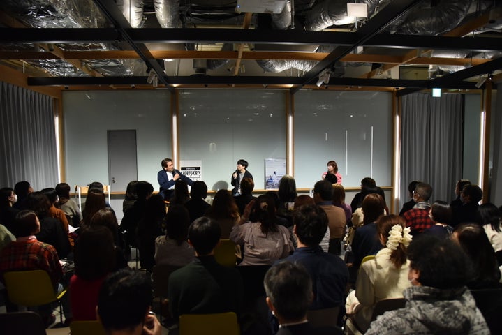 原宿の夜景が美しい会場で、大前さんと加納さんがトークを行いました。