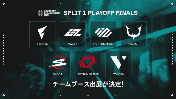 大会では、FENNEL、IGZIST、NORTHEPTION、REJECT、SCARZ、Sengoku Gaming、VARRELのチームが出展し、グッズの販売やミート&グリートを行います。