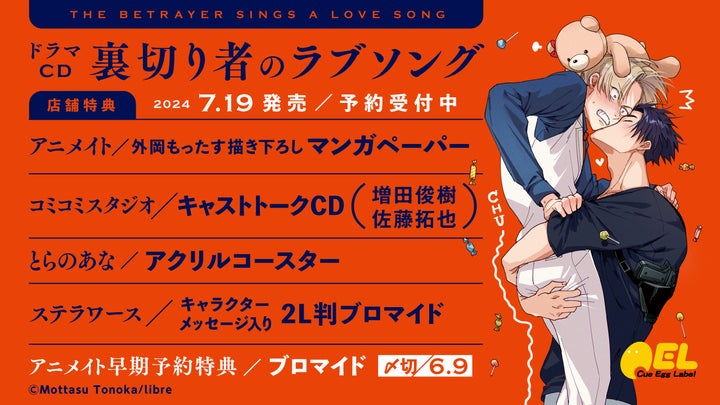 2024年7月19日に発売&配信が決定されたマフィアBL「裏切り者のラブソング」のドラマCD。