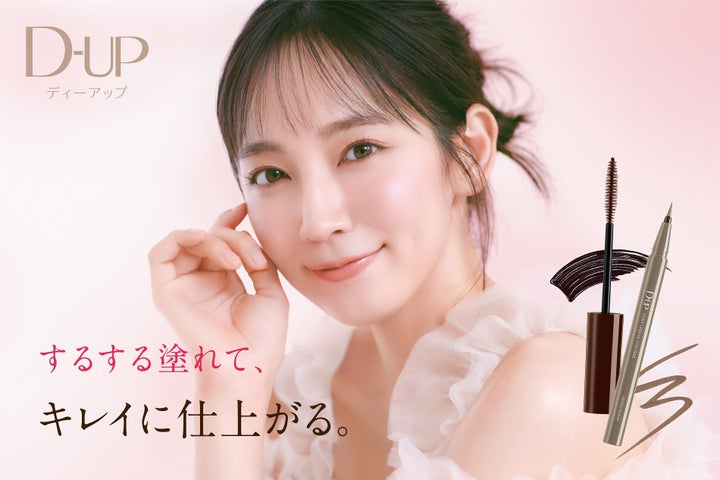 このCMでは、吉岡さんがメイクアップ中に友人と会話をしながらD-UPのマスカラを楽しむ様子が描かれています。