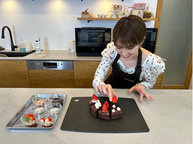 cottaは南明奈さんとのコラボで、DAISOのミックス粉を使用した「濃厚生ガトーショコラ」の実演を行いました。