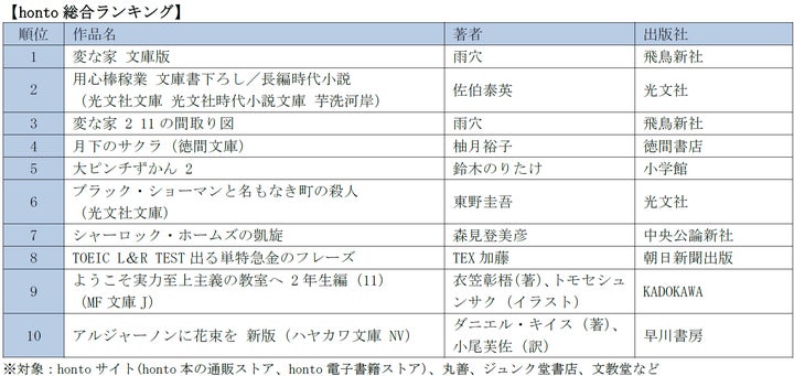 詳細なランキングはhonto公式サイトでご確認いただけます。