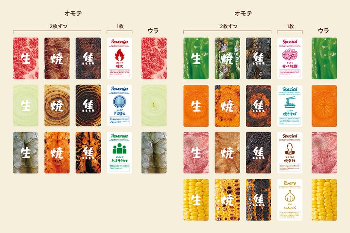 - 「THE GRILL33%」は食材カードの焼き加減を見抜くカードゲーム