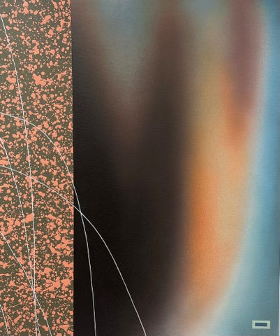 彼は日本の生活風景や建築物をインスピレーションに抽象画シリーズ”Arrangement”を制作し、スプレーやエアブラシなどの技法を駆使しています。