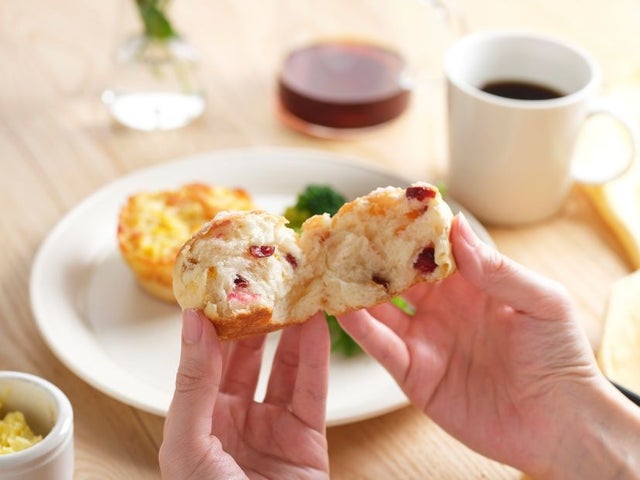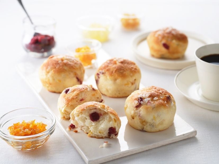 - クランベリーのリッチミルクロール、こぼれコーンとチーズのタッセ