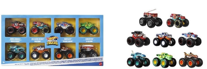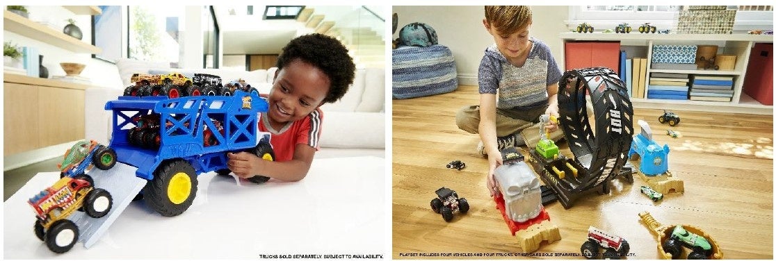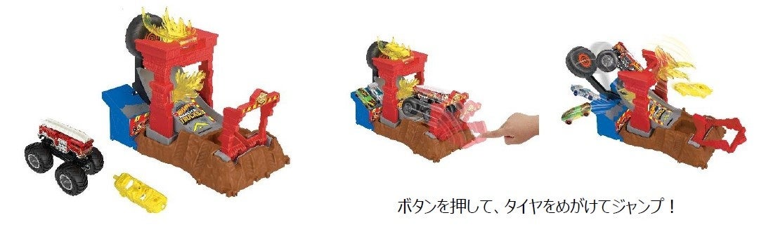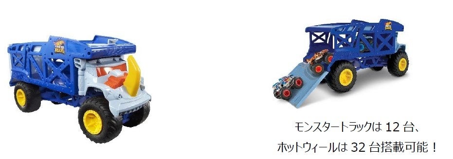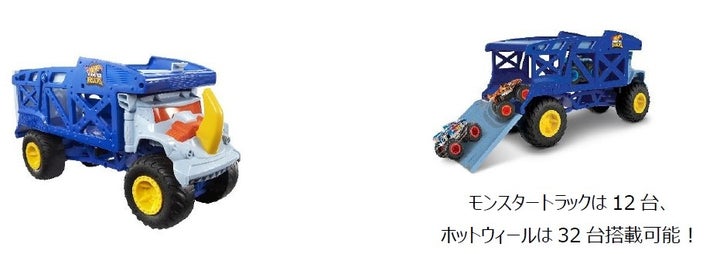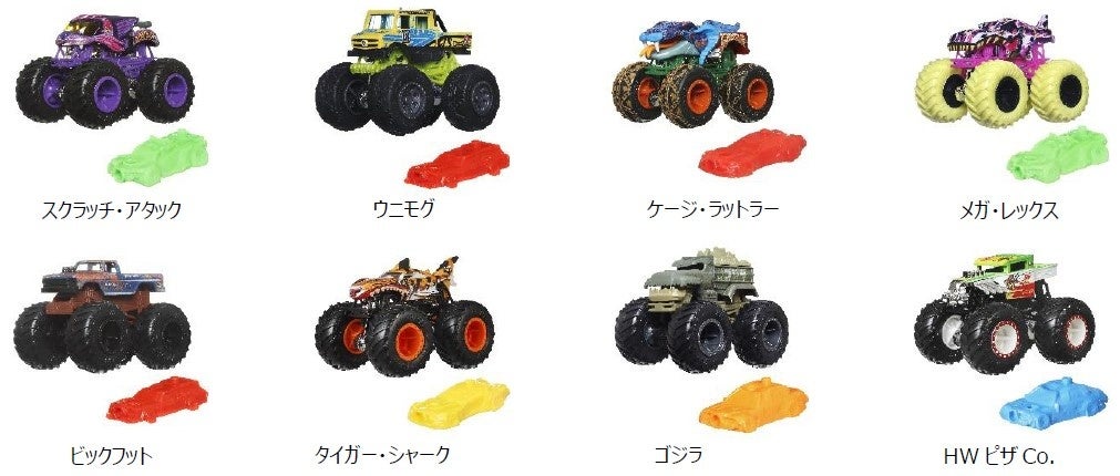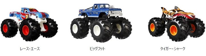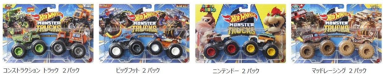 『ホットウィール モンスタートラック ムーバー・ライノ』や『モンスタートラック ビッグループチャレンジ』など、アニメや人気キャラクターをテーマにした商品が登場します。