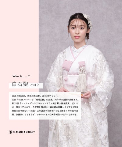 3月号では女優の白石聖さんが「シロトイロ」とPLACOLE&DRESSYのコラボ打掛を着て登場しました。