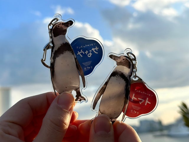 商品はペンギンアクリルキーホルダーが700円、ポストカードが200円で販売中です。
