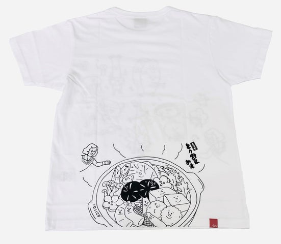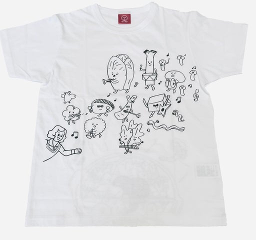 「まつや×OJICOデザインTシャツ」は、とり野菜みそのキャラクター「まつや とり」をフロントに描いており、楽しく行進する食材たちも描かれています。