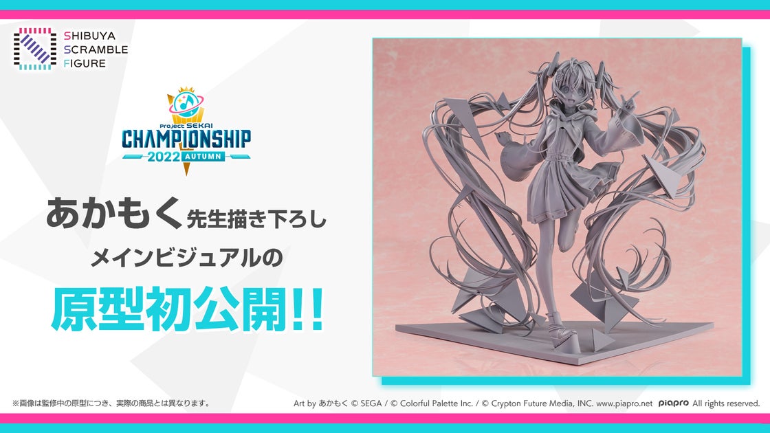 『プロジェクトセカイ Championship 2022 Autumn』はiOS/Android向けゲームの公式大会であり、大会メインビジュアルに使用された初音ミクのフィギュアは「SHIBUYA SCRAMBLE FIGURE」で制作中です。