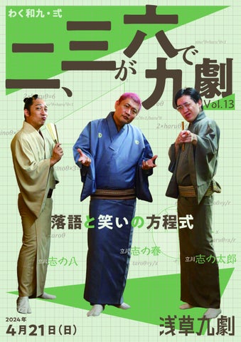 落語パフォーマンスでは、立川志の八、立川志の春、立川志の太郎による『二、三が六で九劇』が楽しめます。