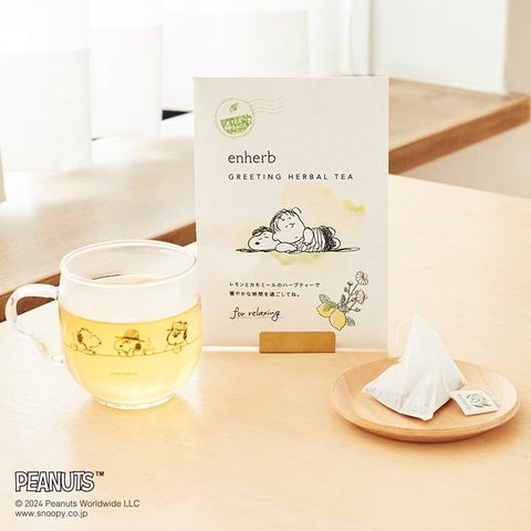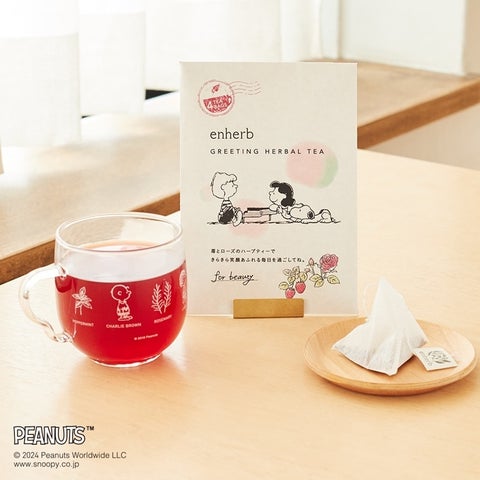 ハーブティーの効能と「PEANUTS」のユーモア溢れる世界観が融合し、感謝の気持ちを伝えます。