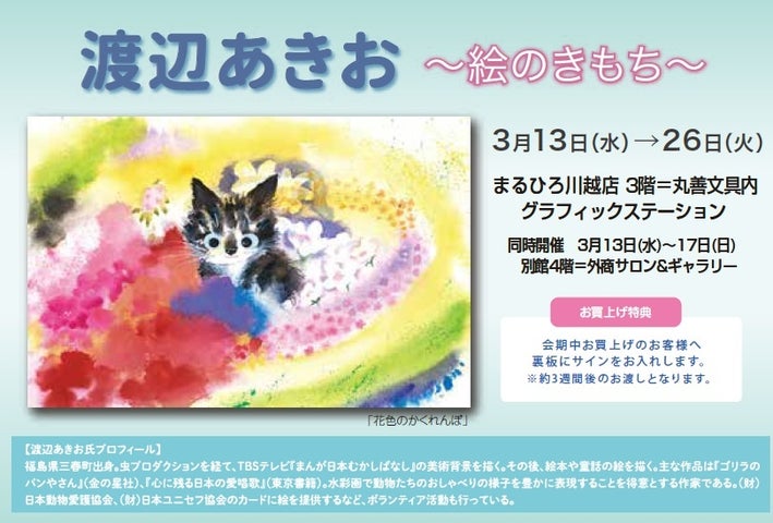 130作以上の本や絵本を制作する傍ら、ボランティア活動も行っており、猫をテーマにした画集も出版しています。