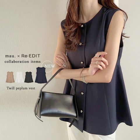 株式会社ネオグラフィックのブランド「Re:EDIT」とmau.さんの初コラボアイテム、ペプラムベストとテーパードパンツの新色「ネイビー」が3/10(日)12:00より販売開始。
