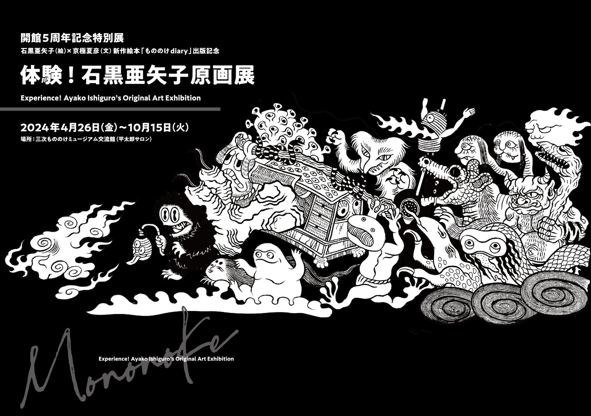 タイトルは「開館5周年記念特別展」で、石黒亜矢子(絵)×京極夏彦(文)の新作絵本『もののけdiary』出版記念が行われます。