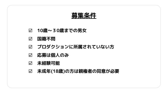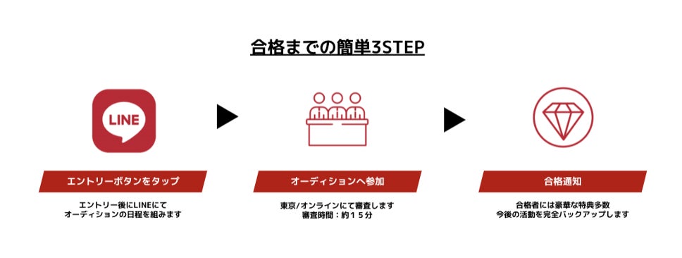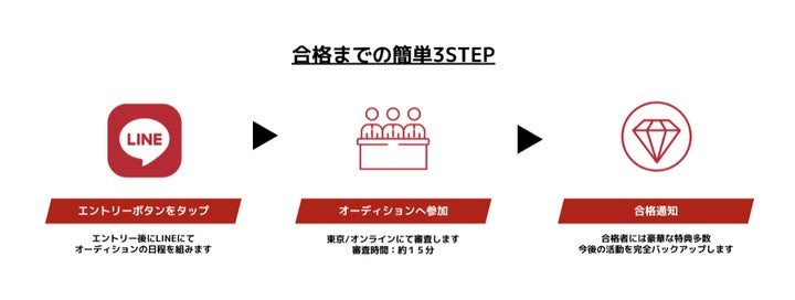 オーディションはLINEで簡単にエントリーでき、合格者には様々な特典が提供されます。