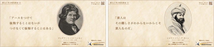 また、関西電気保安協会は新聞広告企画「偉人に学ぶ電気保安」も展開中で、ユーモアあふれる名言や名前を通じて電気保安の重要性を伝えています。