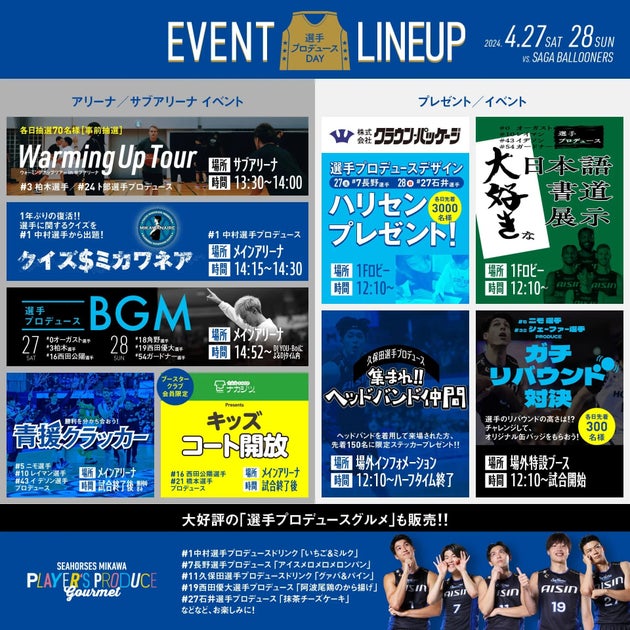 ぜひ、シーホース三河史上最大のイベント数を楽しみに会場へお越しください!