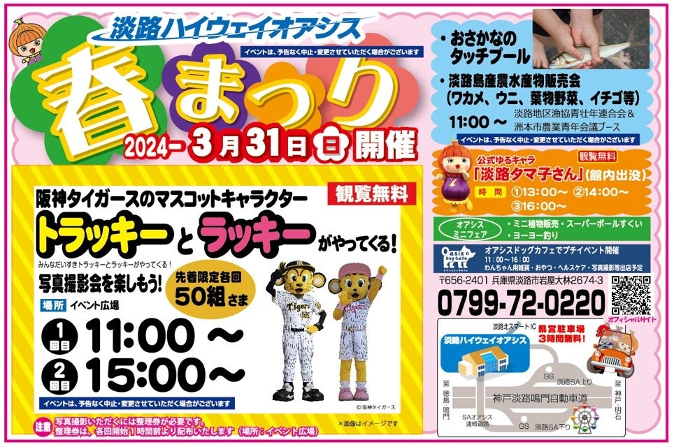 淡路ハイウェイオアシスでは、阪神タイガースのマスコットが登場し、写真撮影会も楽しめます。