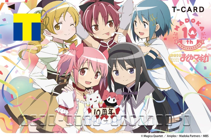 カードには鹿目まどかや暁美ほむらなどの魔法少女たちが描かれたシャフトのイラストがデザインされています。