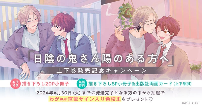 キャンペーン対象商品は2024年4月1日発売の『日陰の鬼さん陽のある方へ』上下巻2冊セットです。