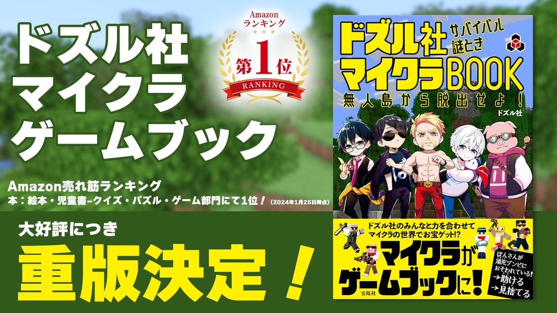 株式会社ドズルが2024年1月25日に初のゲームブック『ドズル社サバイバル謎ときマイクラBOOK』を発売し、重版が決定しました。