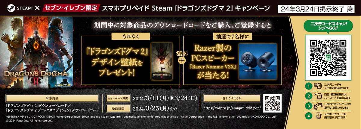 - セブン‐イレブンでスマホプリペイド購入で『ドラゴンズドグマ 2』ダウンロードコード販売開始