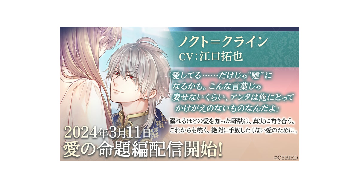 「ノクト=クライン」の愛の物語が配信開始!江口拓也さんがCVを務める本編の続きで、愛と真実に向き合うストーリーが展開されます。