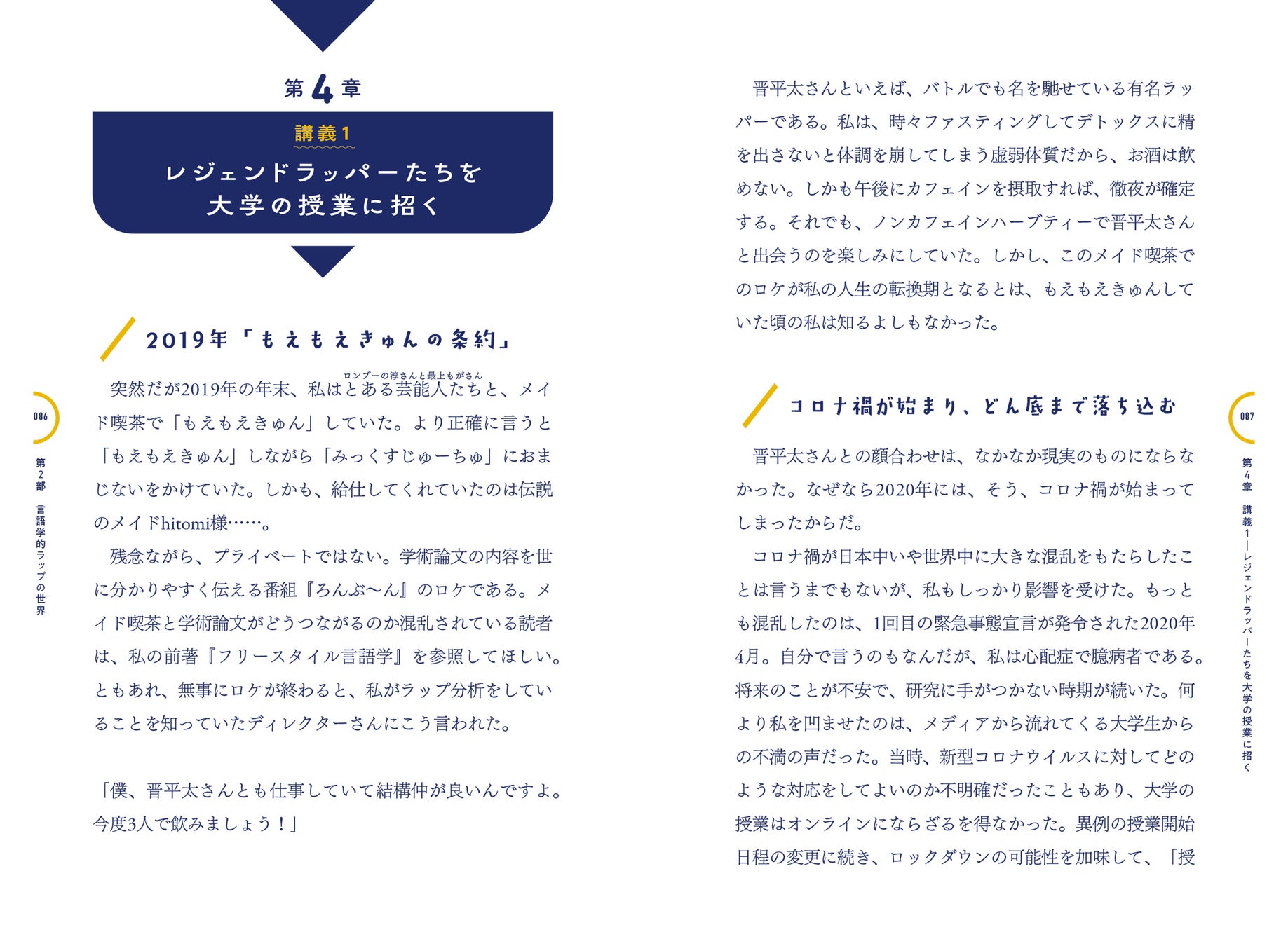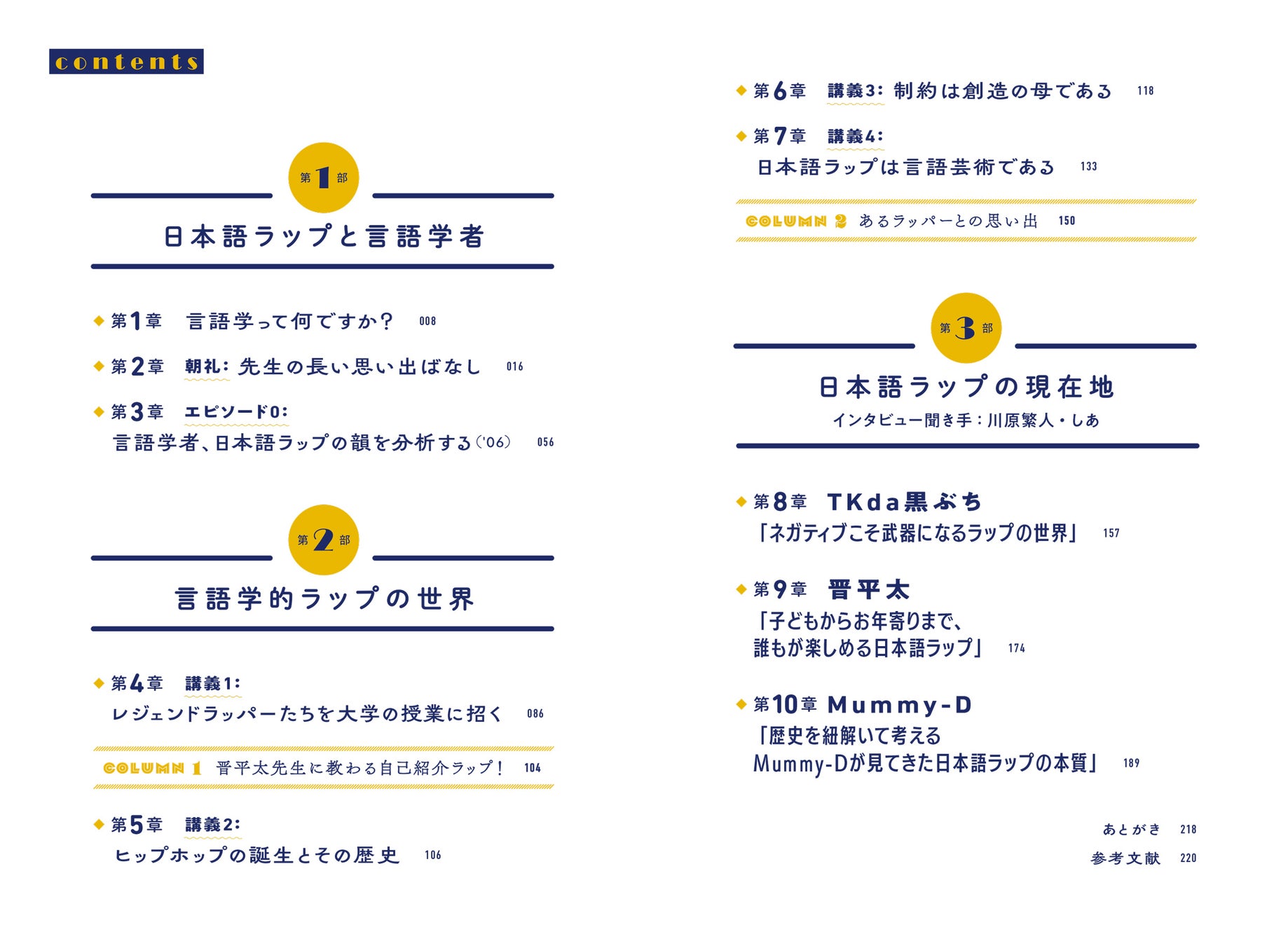 本書は日本語ラップを言語学の視点から考察し、言語学の解説も含まれています。