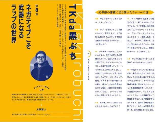 さらに、本書にはMummy-D、晋平太、TKda黒ぶち、しあなどの著名なラッパーたちのインタビューも収録されています。