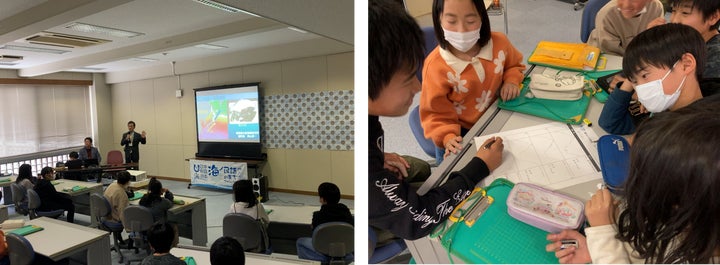 2024年3月6日に開催された「鹿狼山の手長明神」のアニメ上映会・フィールドワークには、新地小学校と福田小学校の5-6年生が参加しました。