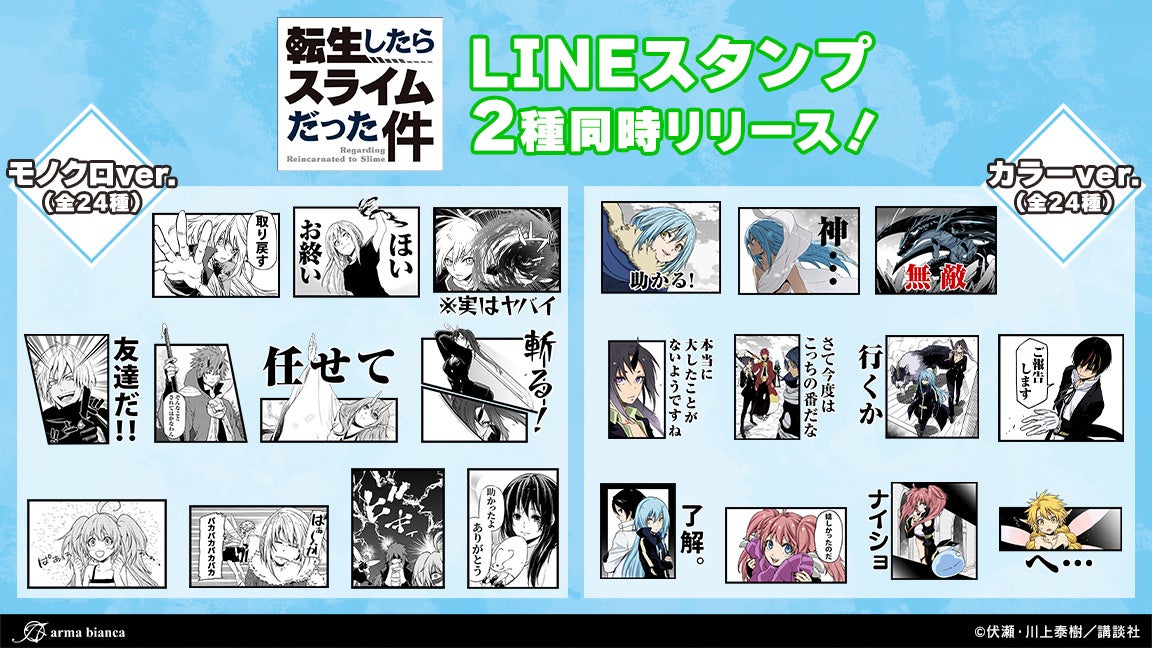株式会社アルマビアンカは、漫画「転生したらスライムだった件」のLINEスタンプ配信を3月11日から開始しました。