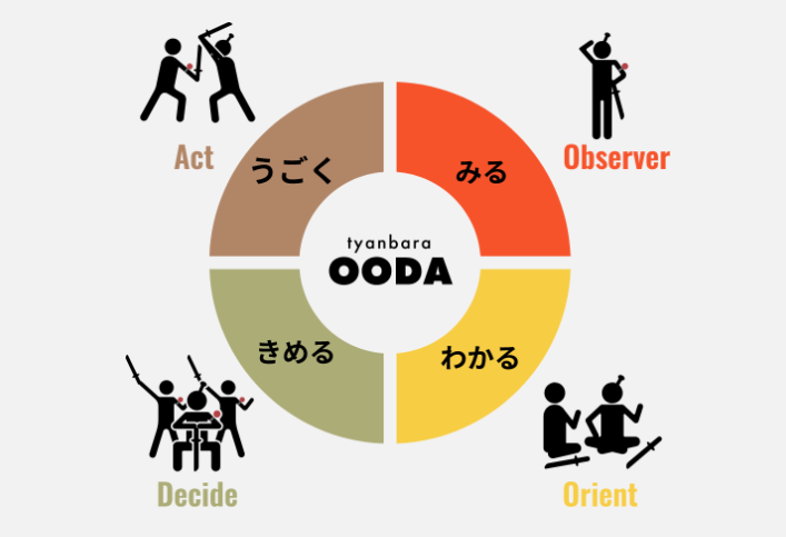 OODA LOOPは、米空軍出身のジョン・ボイド大佐が提唱した戦場で勝つための理論であり、迅速かつ柔軟な意思決定の流れを4つのプロセスごとに分けている。