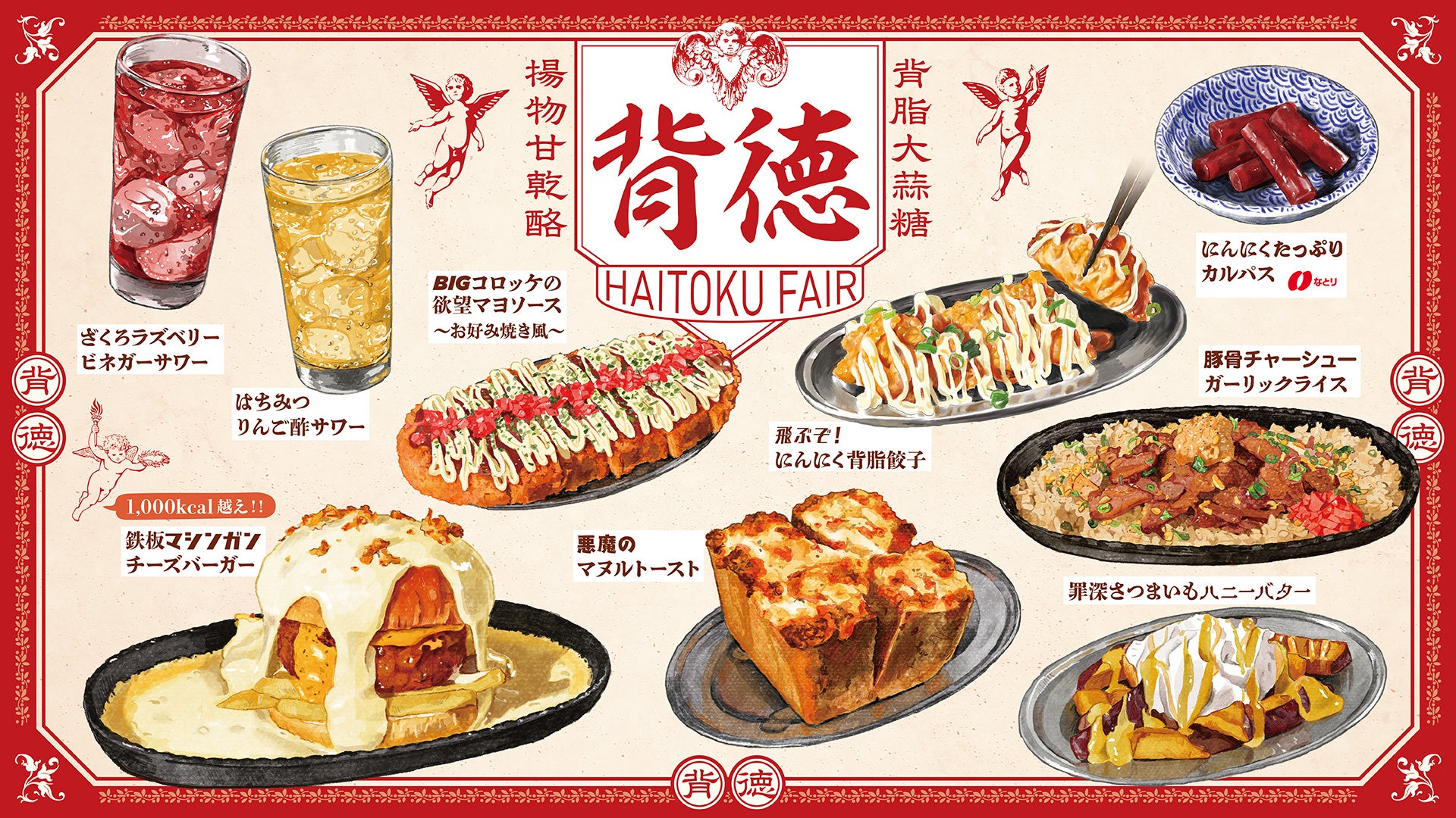 - 背徳フェアではにんにく脂高カロリーのメニューが登場
