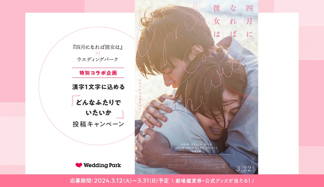 株式会社ウエディングパークが運営する結婚準備クチコミ情報サイト「Wedding Park」が、映画『四月になれば彼女は』とのコラボ企画を開始しました。