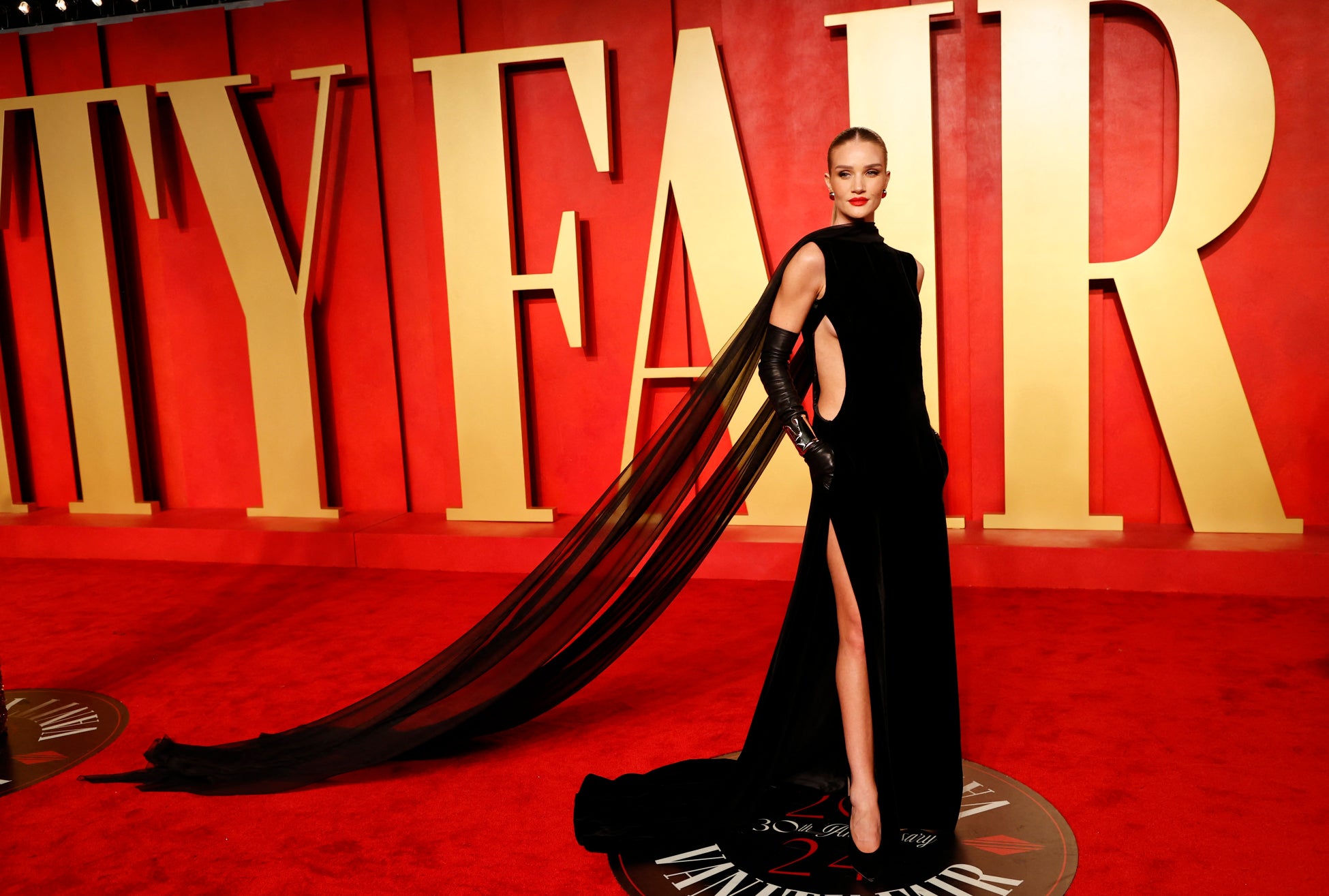 3月10日、ロサンゼルスで開催された『ヴァニティ・フェア』主催のオスカーアフターパーティーには、ロージー・ハンティントン=ホワイトリーとアッシャーがヴァレンティノのルックで登場した。