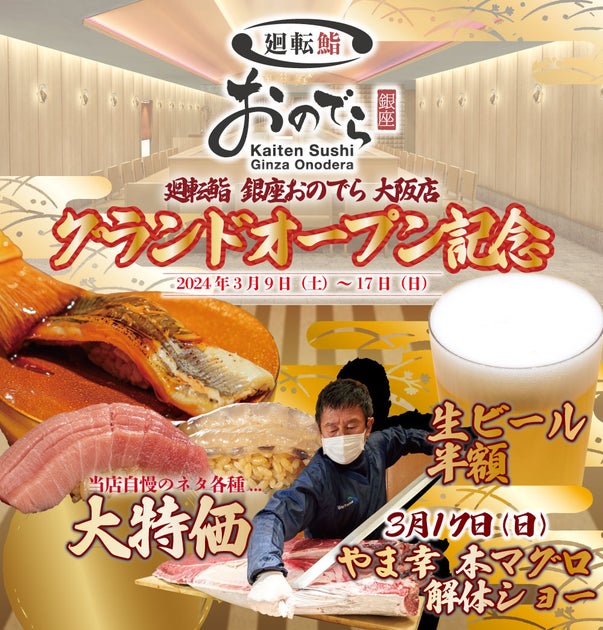 大阪店では特別メニューとして本マグロを使用し、キャンペーンも実施中です。