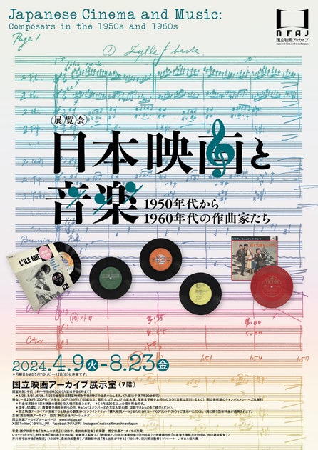 国立映画アーカイブでは、4月9日から約4か月半にわたり、「日本映画と音楽 1950年代から1960年代の作曲家たち」展を開催します。