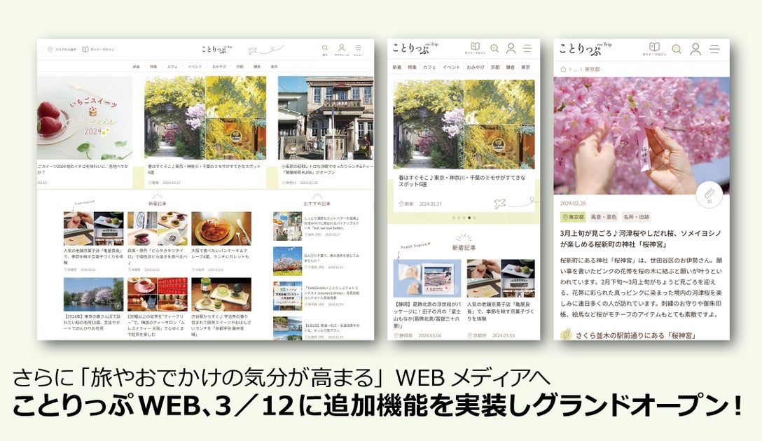 昭文社が運営する女性向け旅メディア「ことりっぷWEB」が全面リニューアルされ、2024年3月12日にグランドオープンしました。