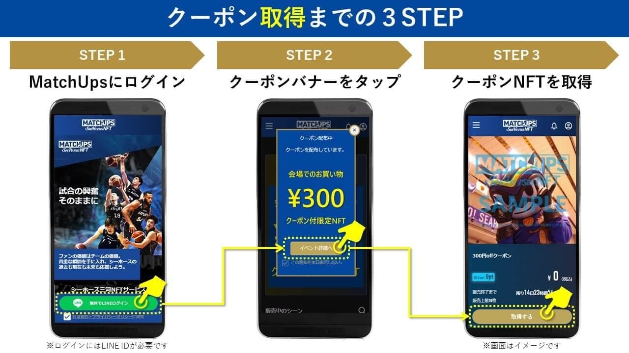 - 1. シーホース三河のNFTサービス「MatchUps」で、ファンフェス202223で使える「300円割引クーポン」が先着200名に配布される。
