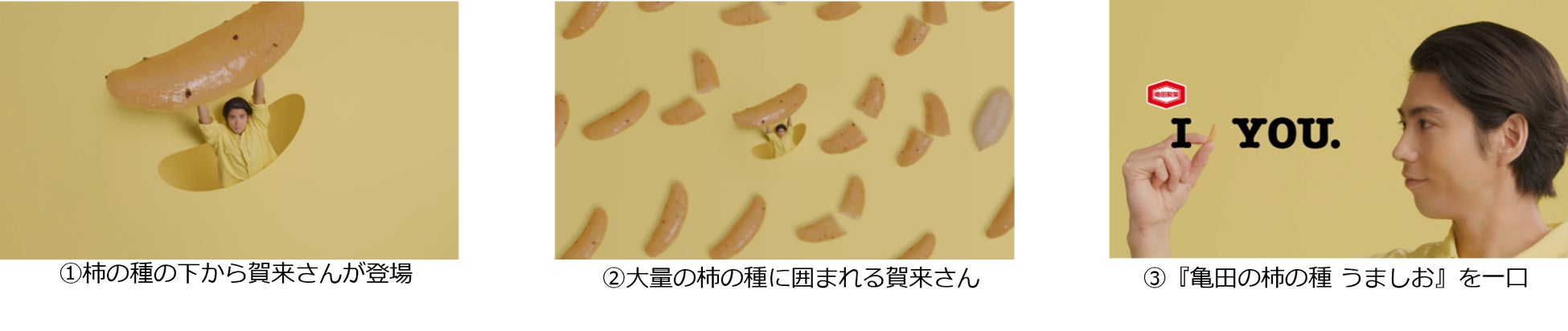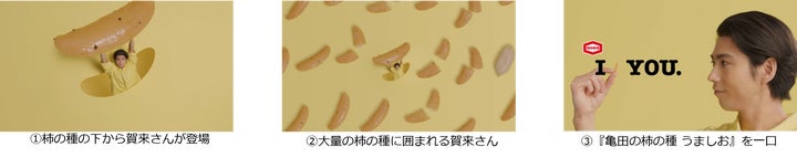 - CMでは賀来賢人さんが愛情たっぷりに柿の種を楽しむ姿