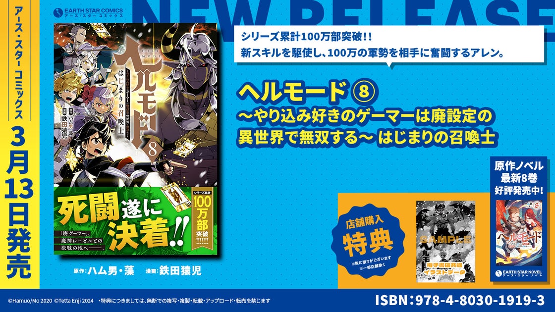 人気作品『ヘルモード~やり込み好きのゲーマーは廃設定の異世界で無双する~』の第8巻が3月13日にアース・スターコミックスから発売されます。