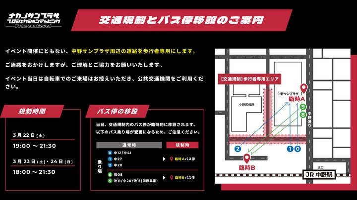- 3月22日から24日、中野サンプラザでプロジェクションマッピング開催