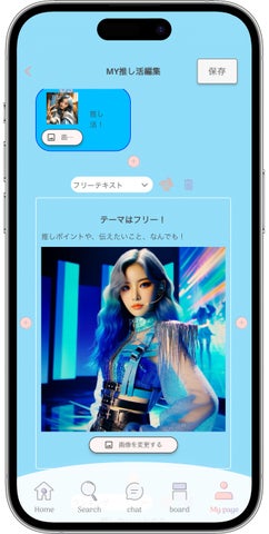 アプリは無料でダウンロード可能で、自分の推しをカスタマイズできるマイページやチャット機能、掲示板、ノート機能などがあり、Z世代向けの推し活をサポートしています。