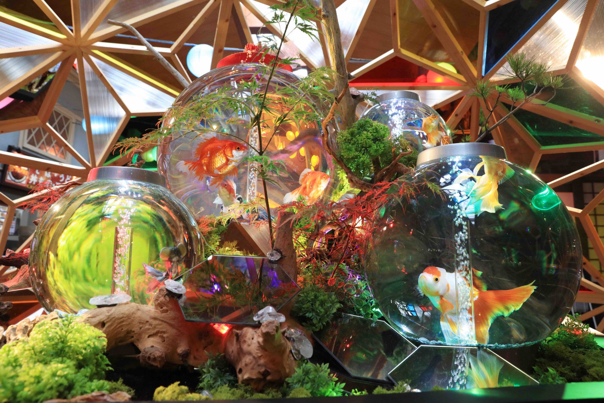 - 約40種類、1000匹以上の金魚展示、金魚回廊や龍と金魚の物語などのゾーン設置