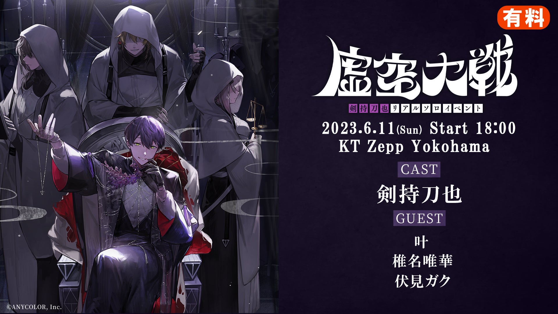2020年12月9日に開催された【虚空集会】から3年の時を経て、再び開催される剣持刀也のソロイベント第2弾の【虚空大戦】。ゲストに叶、椎名唯華、伏見ガクが出演します。