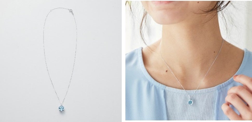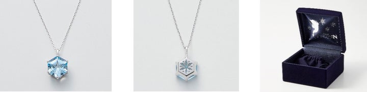 『アナと雪の女王』モチーフの10金ネックレスは、ブルートパーズが光るデザインで存在感があります。