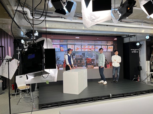電車内や仮想空間など様々なシーンをわずかなスペースで撮影し、多彩な背景再現やコスト効率化が可能となっています。