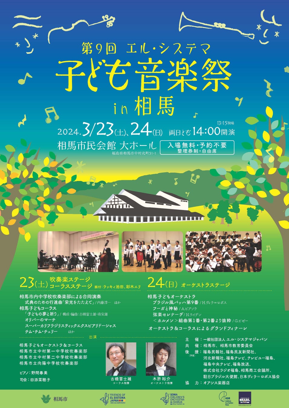 2024年3月23日(土)と24日(日)に開催される「第9回エル・システマ子ども音楽祭 in 相馬」のチラシが公開されました。