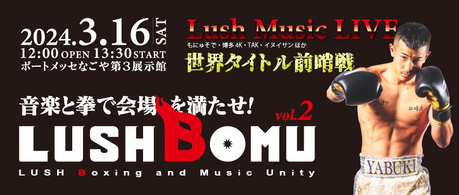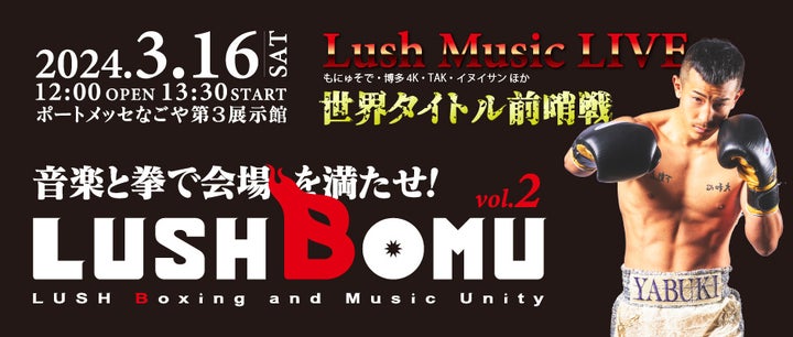 3月16日(土)にポートメッセなごやで開催される『LUSHBOMU vol.2』は、ボクシングと音楽の融合をテーマにしたエンターテイメントイベントです。